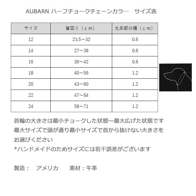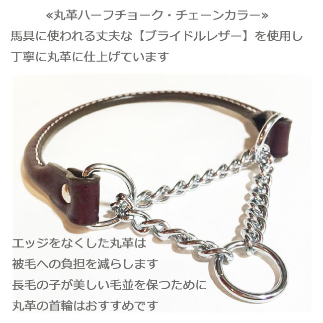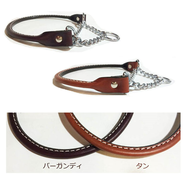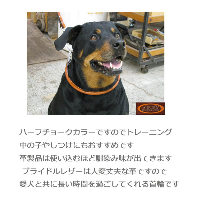 犬 首輪 革 チェーン ブランド おしゃれ AUBURN 丸革チェーン・ハーフチョークカラー 小型~大型犬用 丸革ブライドル(馬具)レザー ペット・ペットグッズ 犬用品 首輪 胴輪・リード 首輪 本革 高級 おしゃれ ハーフチョーク しつけ