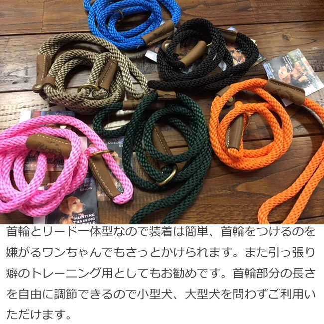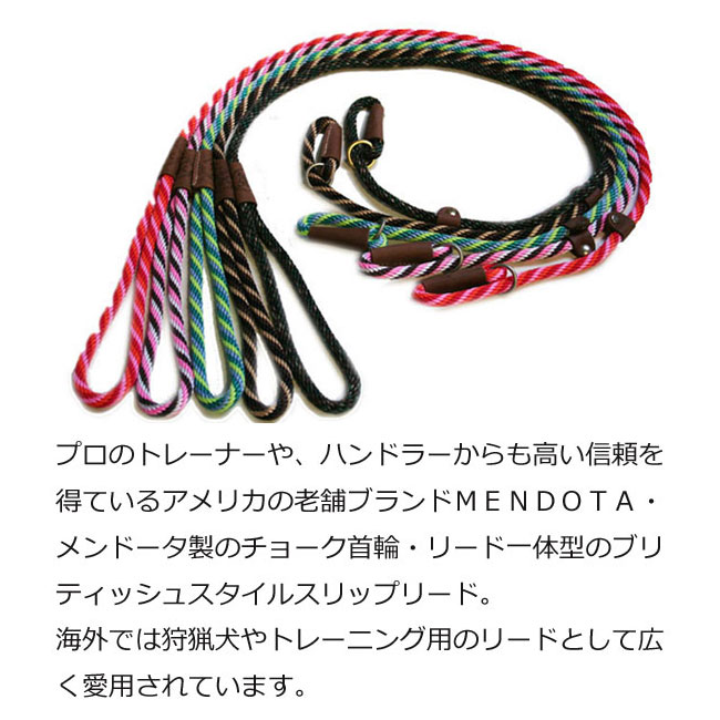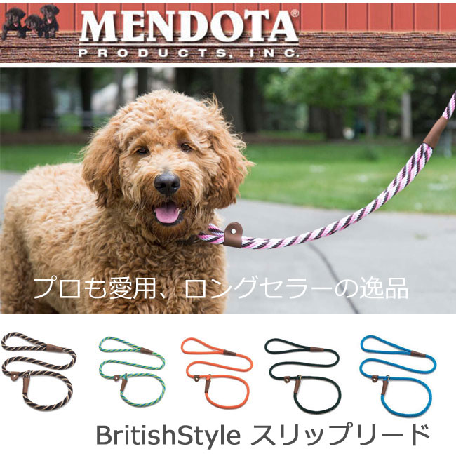 Mendotaメンドータ 犬 リード・首輪一体型 ブリティッシュスタイル スリップリード1cm幅 120cmタイプ(小型犬 中型犬用)ペット ペットグッズ 犬用品 リード しつけ おしゃれ ロープ