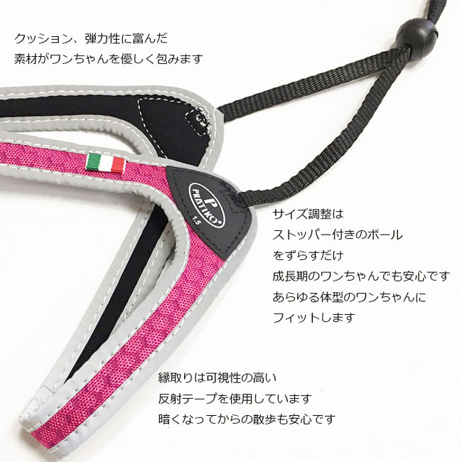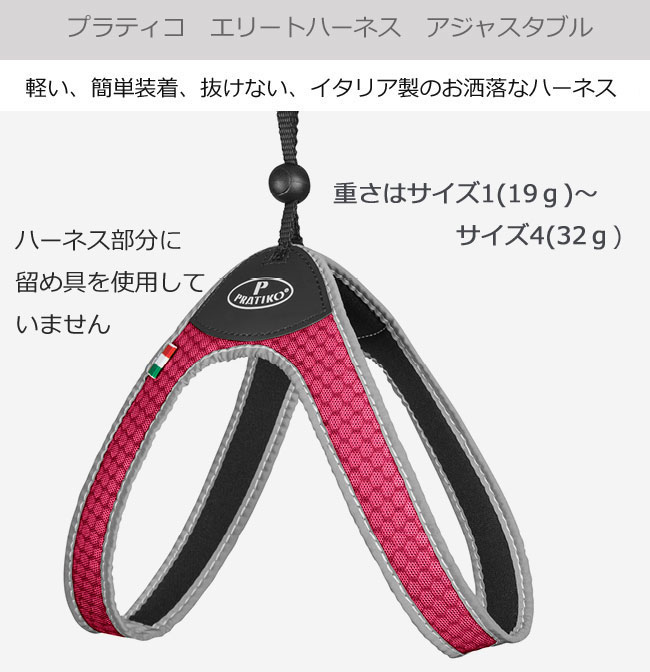 犬 ブランド ハーネス 光る PRATIKO・プラティコ エリートハーネス 小型犬・中型犬用 胴輪 おしゃれ ぬけない かわいい 一体型 簡単装着