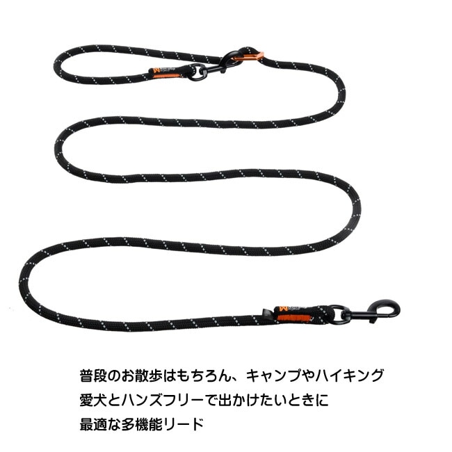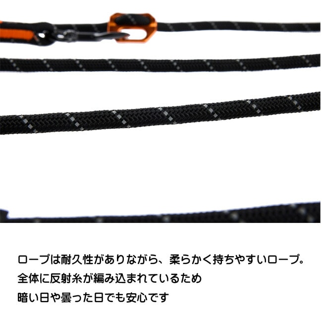 ハンズフリーリード、長さ調節が可能 両サイドにカラビナ付き 使い方色々