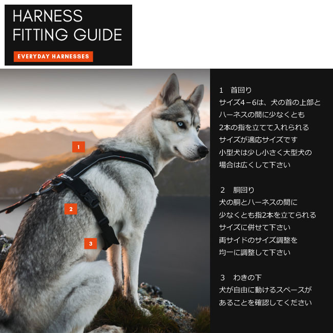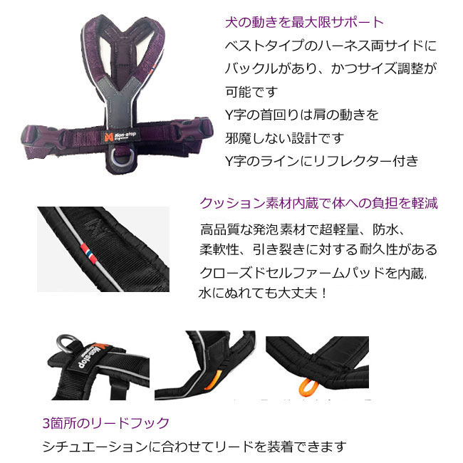 防水機能抜群のクッション入りハーネス、山や草原、雪の中を駆け回るスポーツドッグのために研究された走りやすく軽量なハーネス。ぐいぐい引いても体への負担がかからないよう計算された作りです。カニクロスやトレッキング、山登りなど愛犬とアウトドアを楽しむためのギア(道具)です。