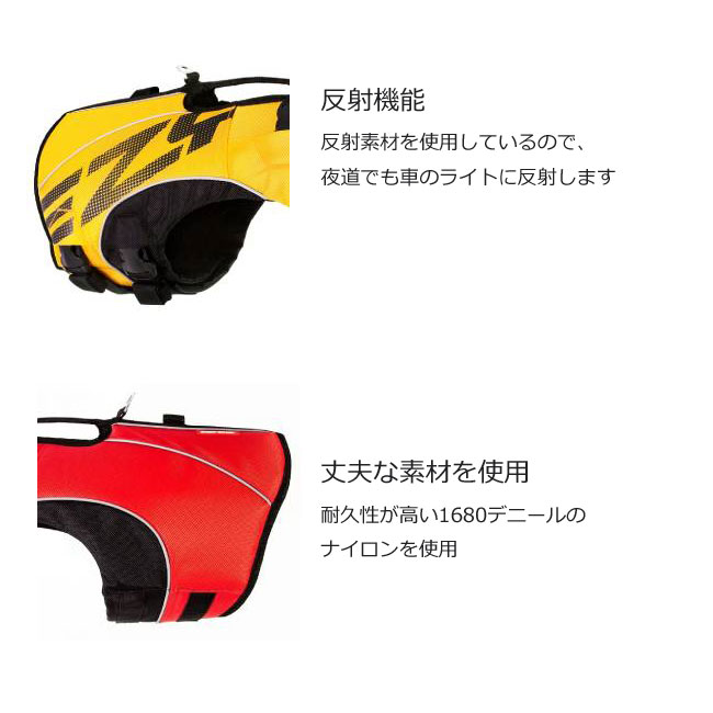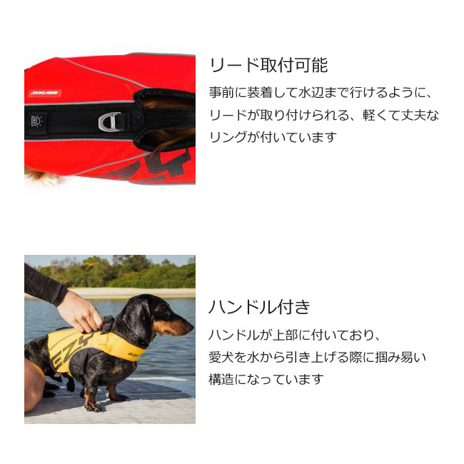犬用のライフジャケット、ライフベスト 背中にハンドル付きいざというときにさっと愛犬をつかめます。またリードをつなぐフック付き。ベルトのインナーネオプレン素材を使用愛犬のボディにフィットします。