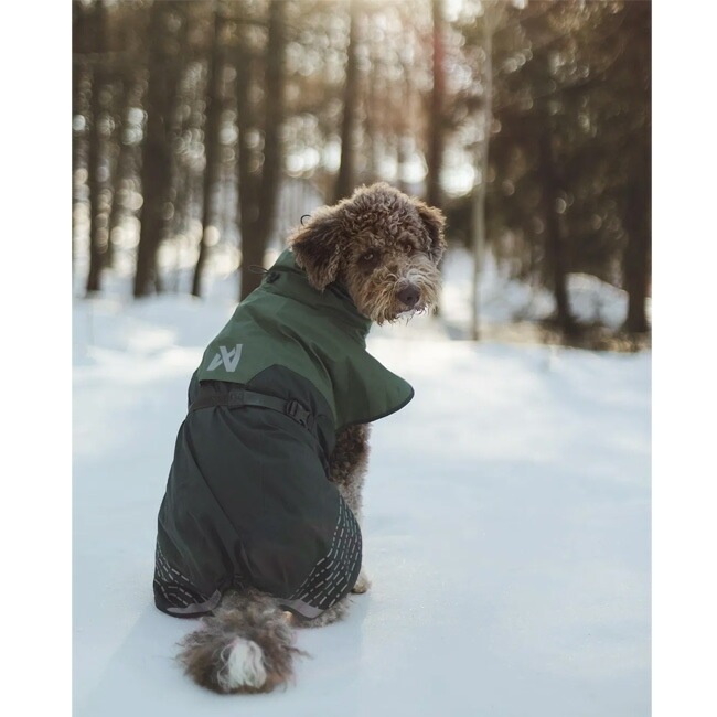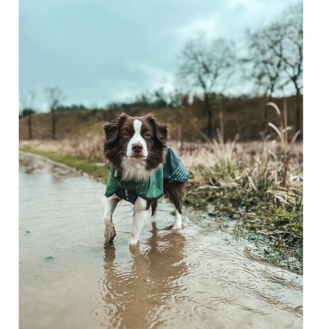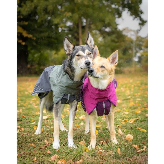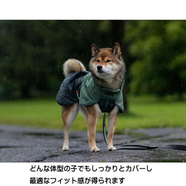 フィヨルドレインコートは、大雨でもレインコートの中は濡れず、愛犬を汚れや寒さから守ります。