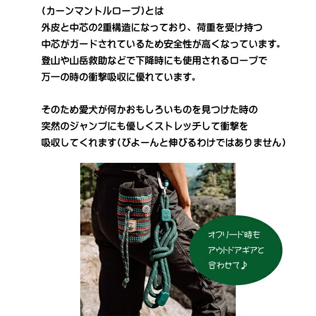 ロープリードはクライミング用のロープとツイストロックカラビナを使用し、耐久性安全性に優れています。