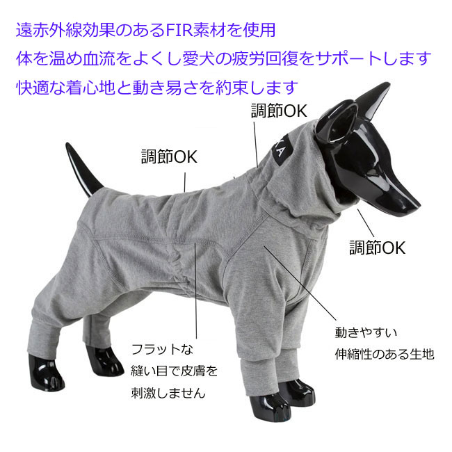 PAIKKA 遠赤外線、リカバリーオーバーオール 小型犬 中型犬 大型犬 犬服 つなぎ 犬服
