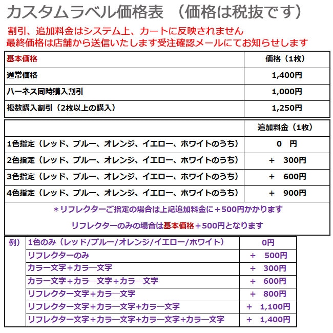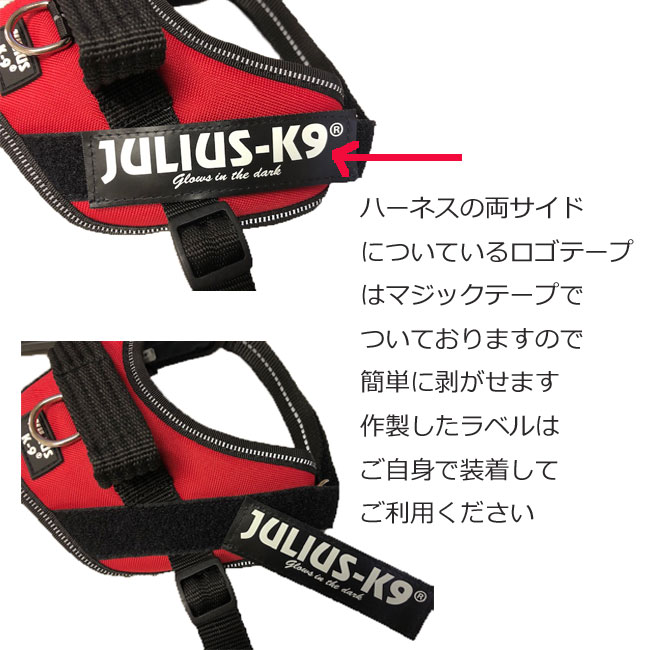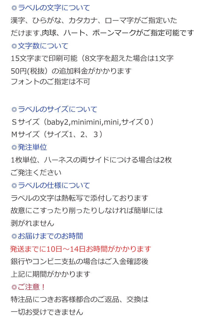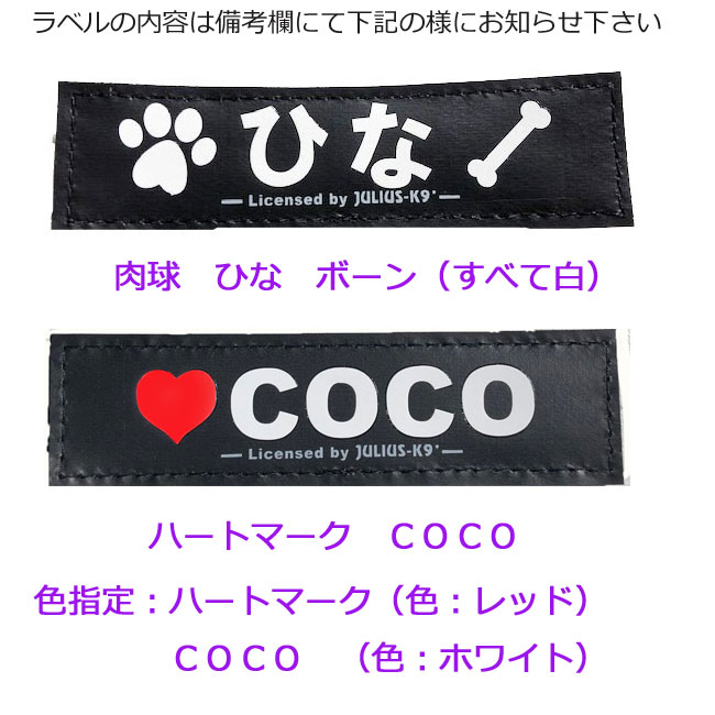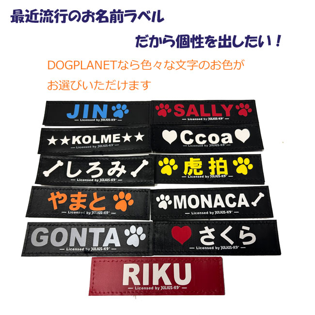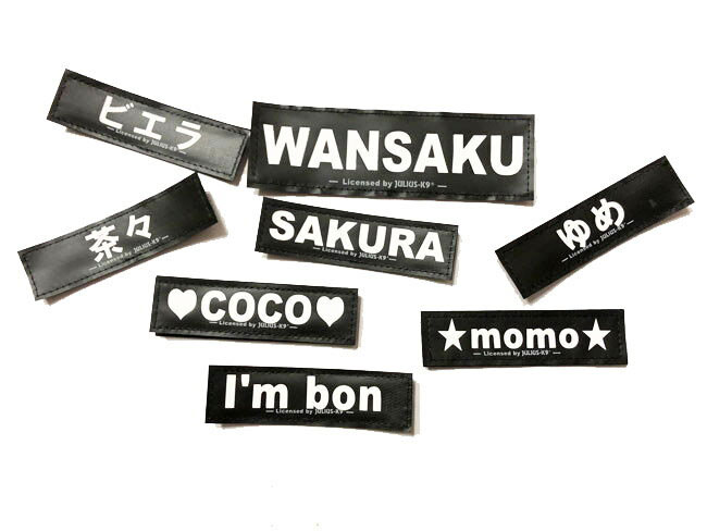 ワンちゃんの名前等、ユリウスハーネス専用のオリジナルラベルをお作りします。お
