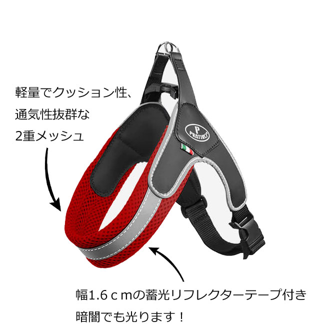 PRATIKO プラティコ エアーソフトハーネス サイズ1~4 小型犬、中型犬 胴輪 ハーネス 光る 犬